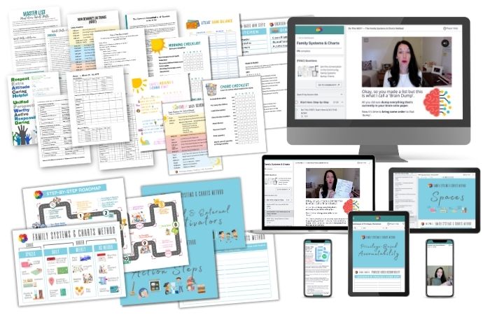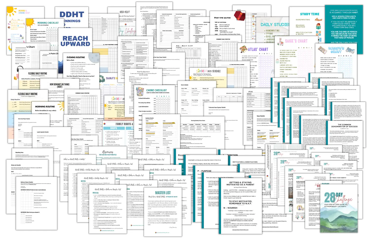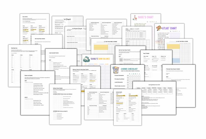 Get access to all of my printable charts, including Family Routines & Schedules, Morning & Evening Routines, Chore Charts, Paid Jobs, Bank Balance Sheets, Master List of Skills, Family Agreements & Contracts, and Homeschool & Study Time Charts (with zip file) (value $197)