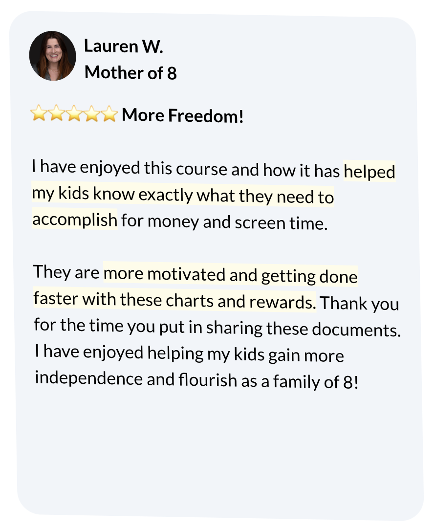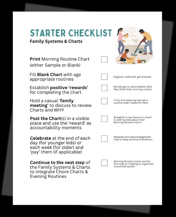 This kit gives you the first steps to stop the chaos and start building habits of independence and responsibility in your kids.