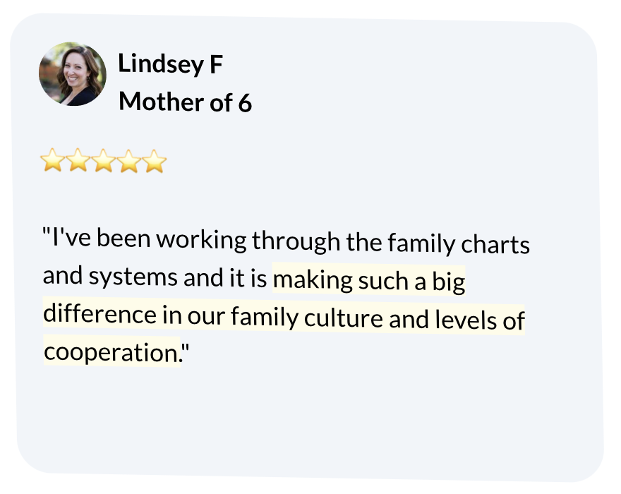 The RESOURCES you need to create family systems which increase cooperation and individual responsibility. Get MORE done with LESS nagging!